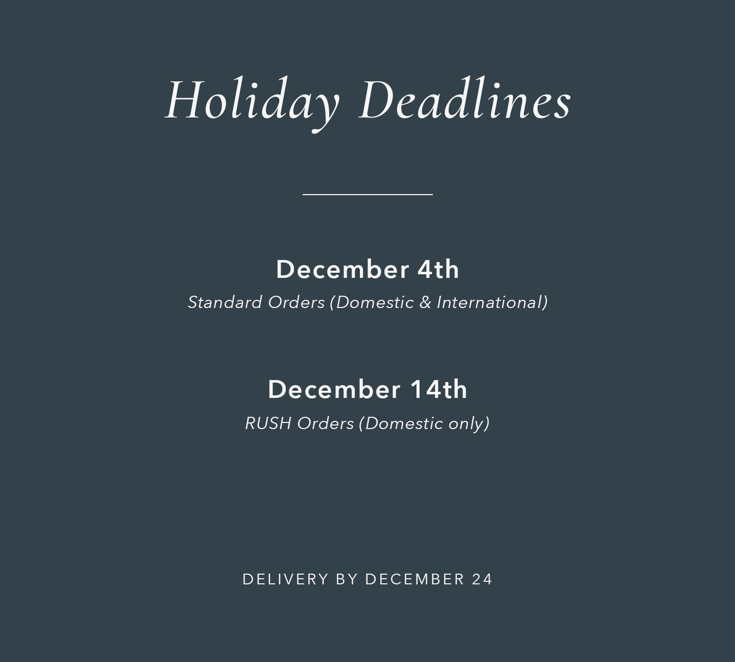 Continue ReadingIt’s that time of year again! Our holiday deadlines are set to guarantee delivery on…